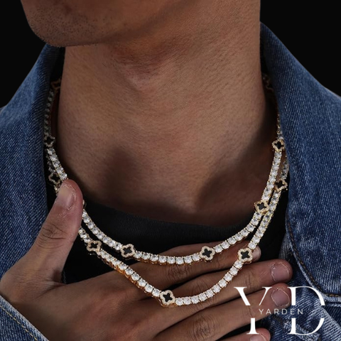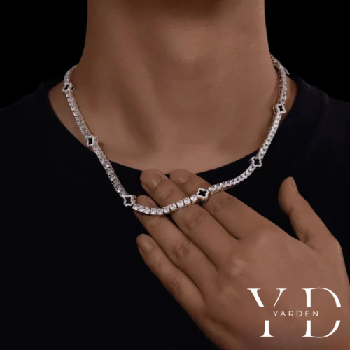 הנחה 33%שרשרת טניס תלתן - זהב לבן 18 קראט