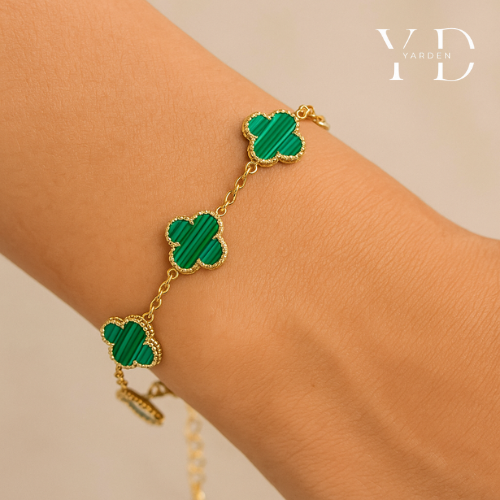הנחה 50%צמיד תלתן ירוק יוקרתי | זהב 18 קראט