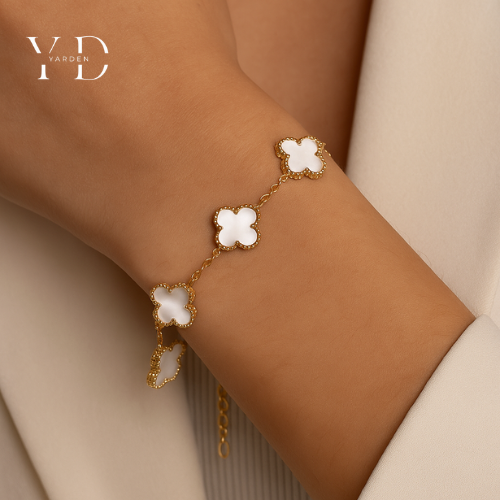 הנחה 50%צמיד תלתן לבן | בציפוי זהב 18K