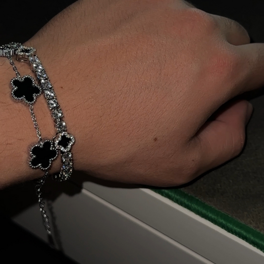 הנחה 41%צמיד טניס תלתן + צמיד תלתן | זהב לבן