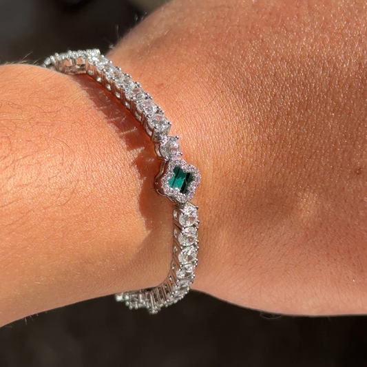 הנחה 40%צמיד טניס תלתן ירוק - זהב לבן
