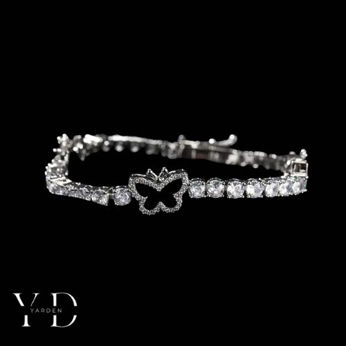 צמיד טניס פרפרים בציפוי זהב לבן – אלגנטיות עם משמעות ✨