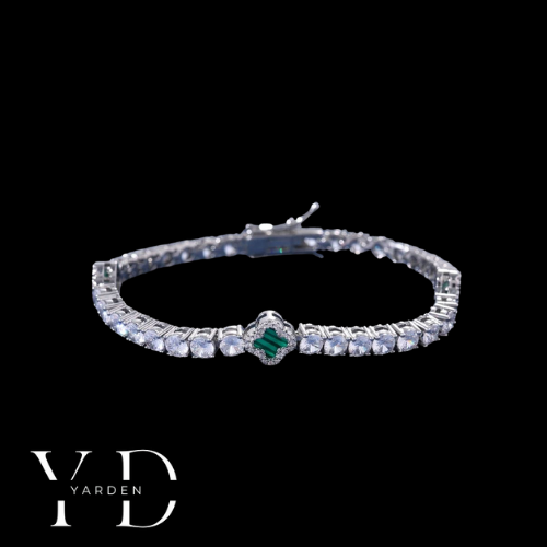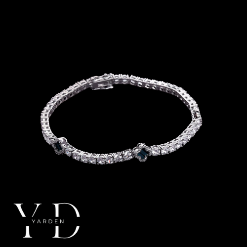 צמיד טניס תלתן ירוק - זהב לבן