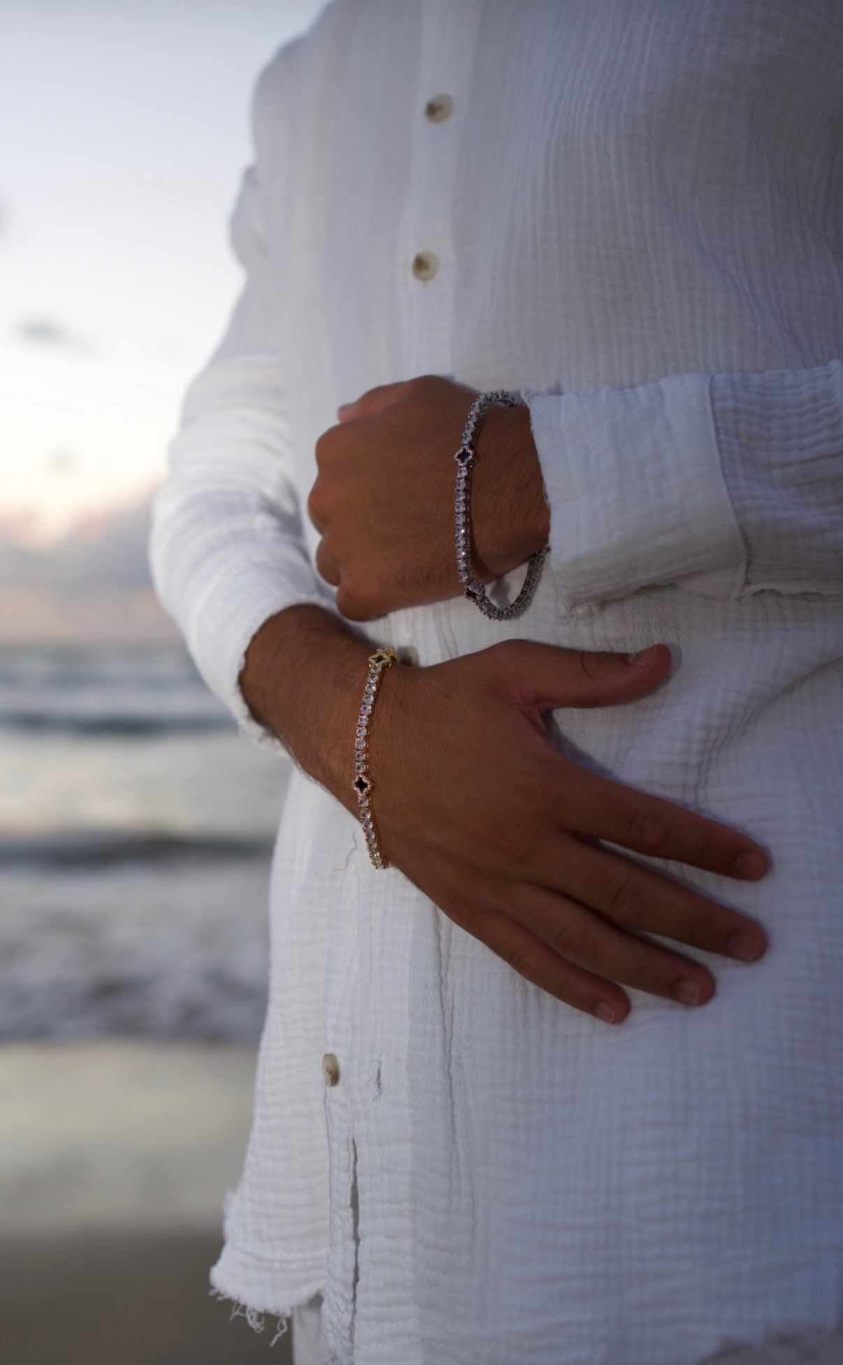 צמיד טניס תלתן - זהב לבן