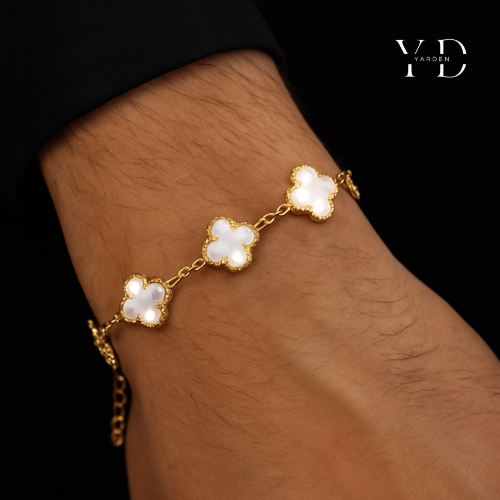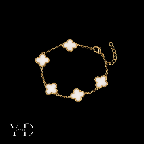 🤍 צמיד תלתן לבן יוקרתי | בציפוי זהב 18K