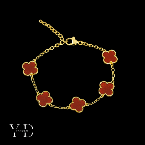 צמיד תלתן אדום זהב 18 קראט
