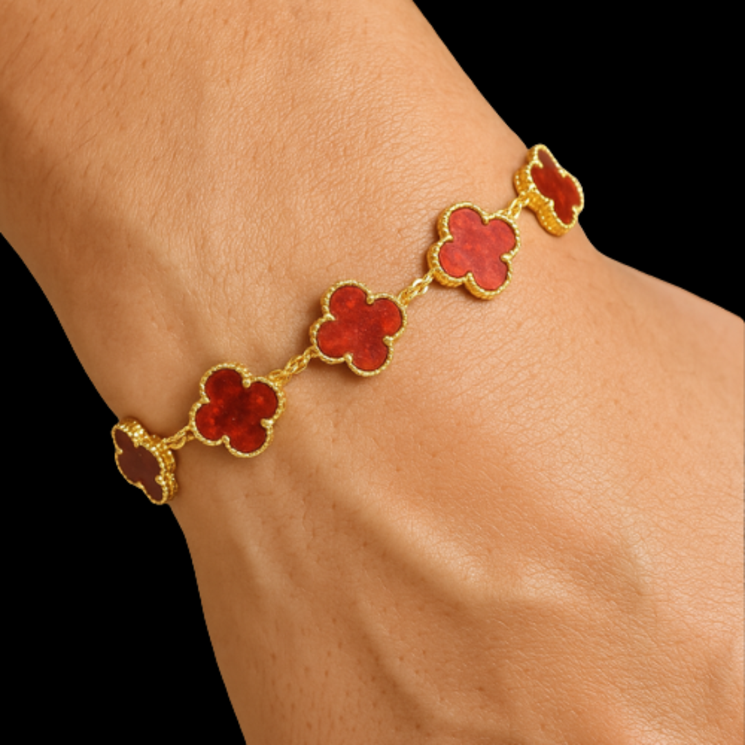 ❤️🔥 צמיד תלתן אדום יוקרתי | יוניסקס | בציפוי זהב 18K