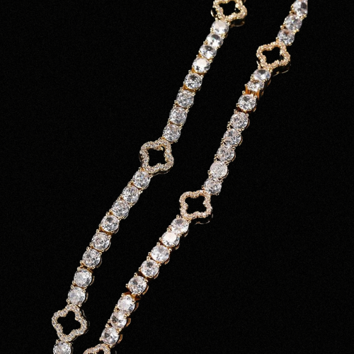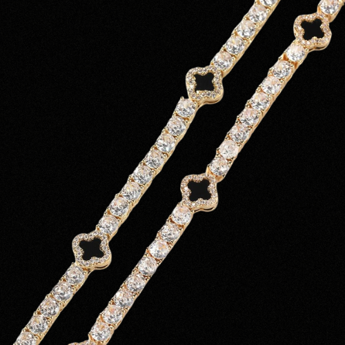 🍀 צמיד טניס תלתן לגבר – בציפוי זהב 18K
