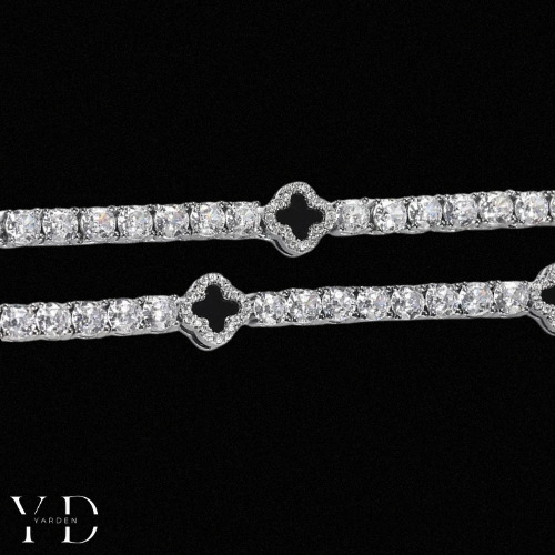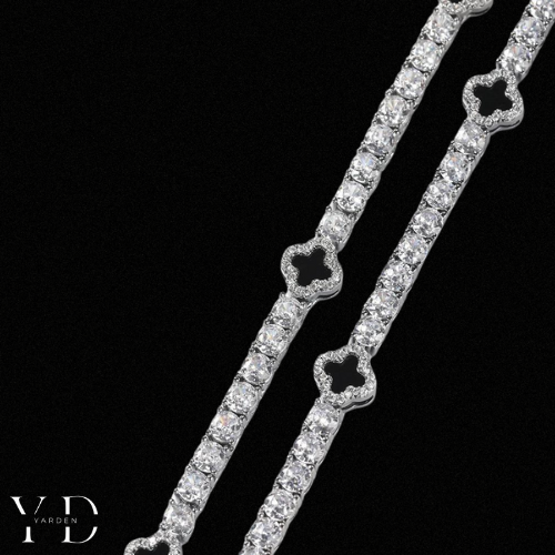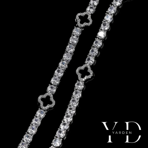 שדרגו את הסטייל שלכם עם שרשרת טניס תלתן בציפוי זהב לבן,