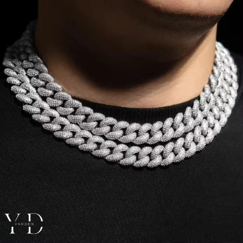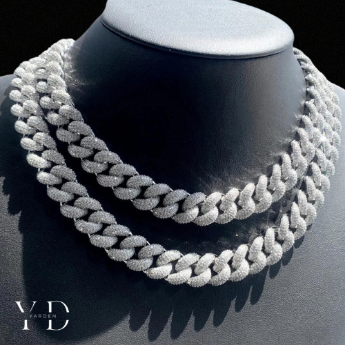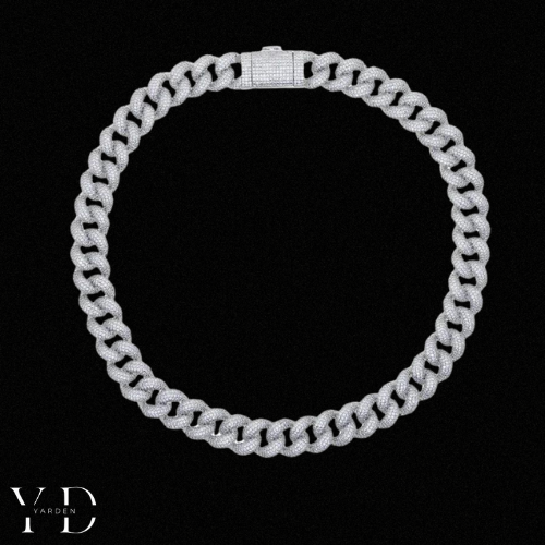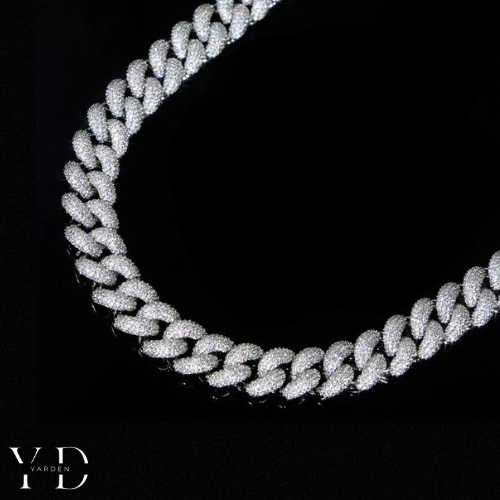 השרשרת משובצת ב־3 שכבות של אבני זרקונים נוצצים שהונחו בעבודת יד, ומצופה ב־5 שכבות של זהב לבן 18 קראט – לגימור מושלם וברק שקשה להתעלם ממנו.